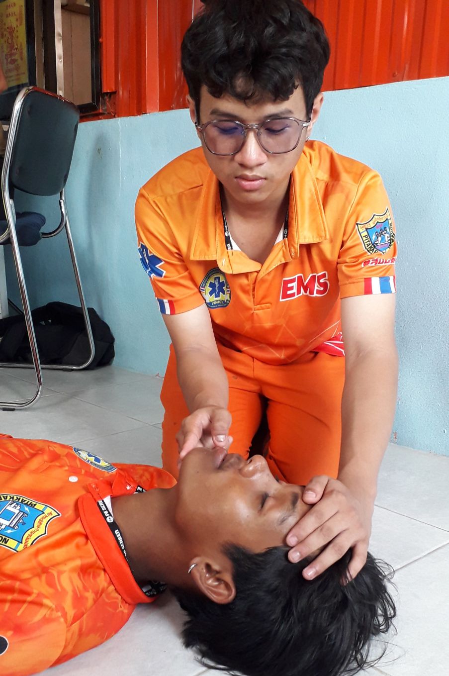 A single rescuer with little training and limited equipment who witnesses a cardiac arrest might provide only chest compressions until help arrives. For providing airway and breathing assistance;