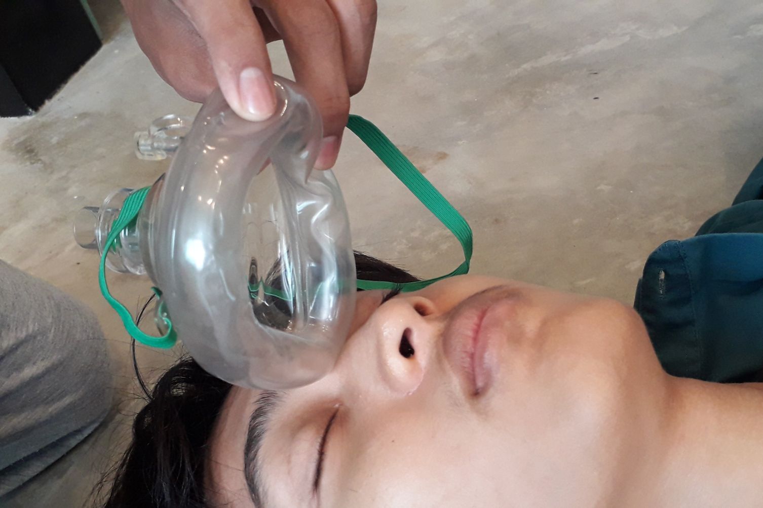 - If using a mask, place the pocket mask on the patient’s face, using the ridge of the nose as a guide for positioning.